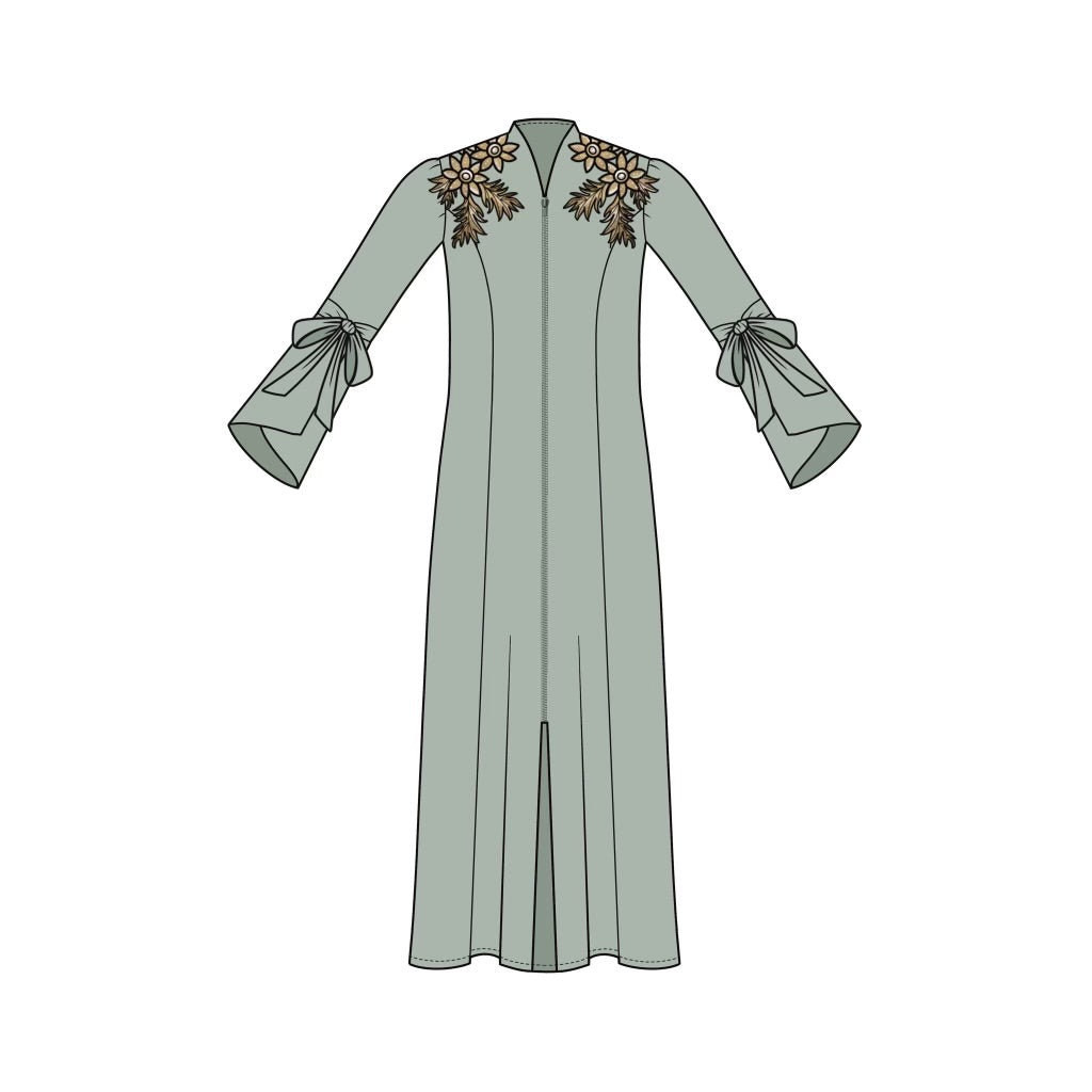 Made from smooth satin stretch fabric, it features a front zipper for quick and easy wear. The circular flounce sleeves with adjustable ties add a refined touch, allowing for a personalized fit. With convenient pockets and a true-to-shirt size design. Decorated with two golden beaded applications at the top. The sizing is between the Brown toga and the classic togas. Not as tight as brown toga but not as loose fitting. True to shirt size XS to 2XL. The hem is premade to fit women between 5'2" to 5'9". We do not alter any hems