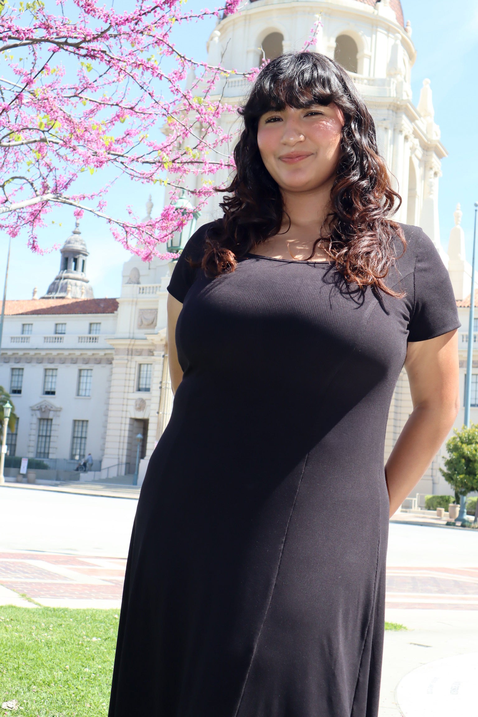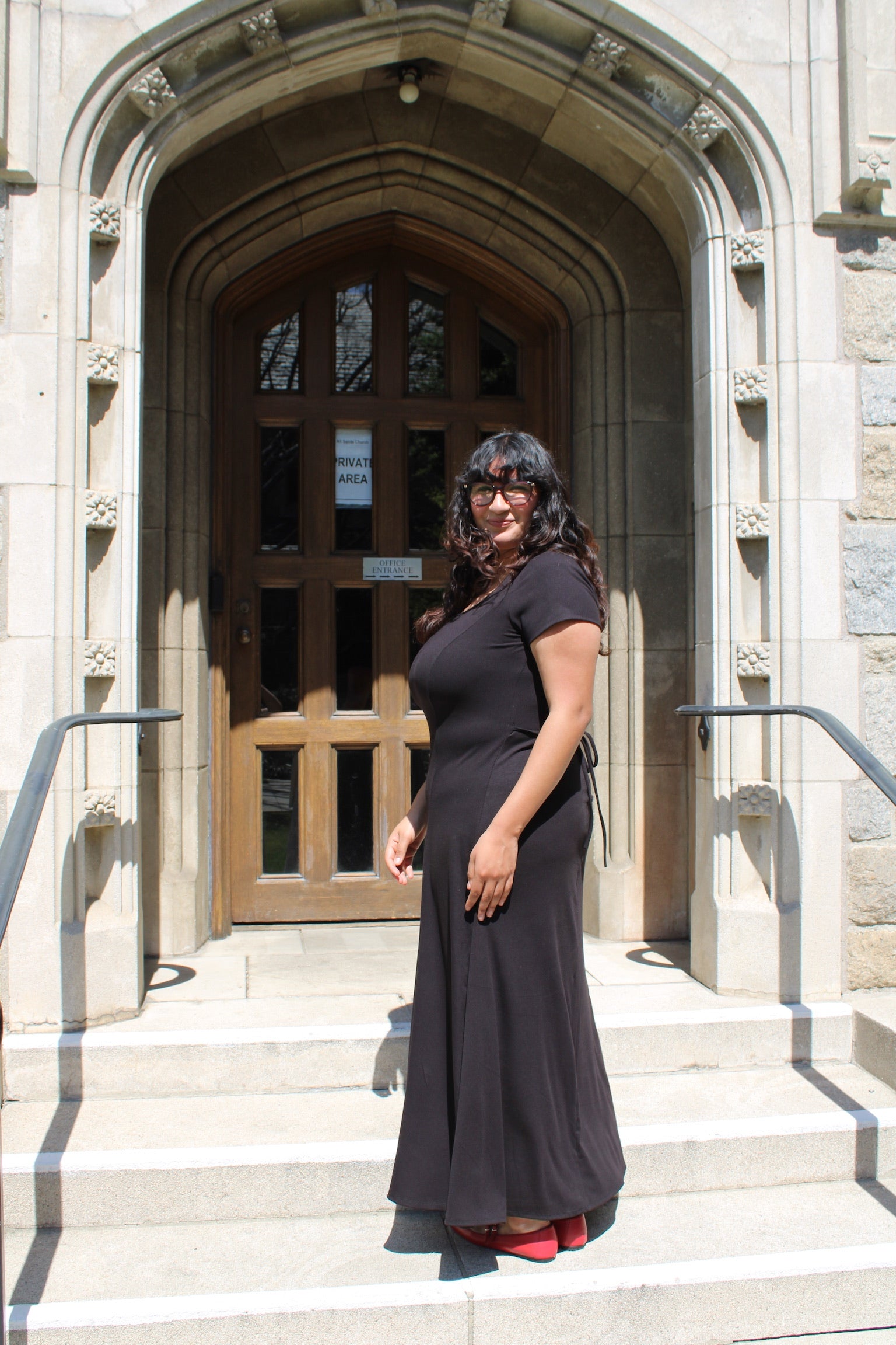 This princess-cut maxi dress is designed with a structured bodice and a flowing skirt. Made from ribbed material, it provides a combination of texture and comfort. Unlike dresses with a defined waistline, the princess cut provides a continuous, vertical line from the shoulders to the hem. This creates a lengthening effect. Features an adjustable waist tie at the back. This allows for a customized fit at the waist.