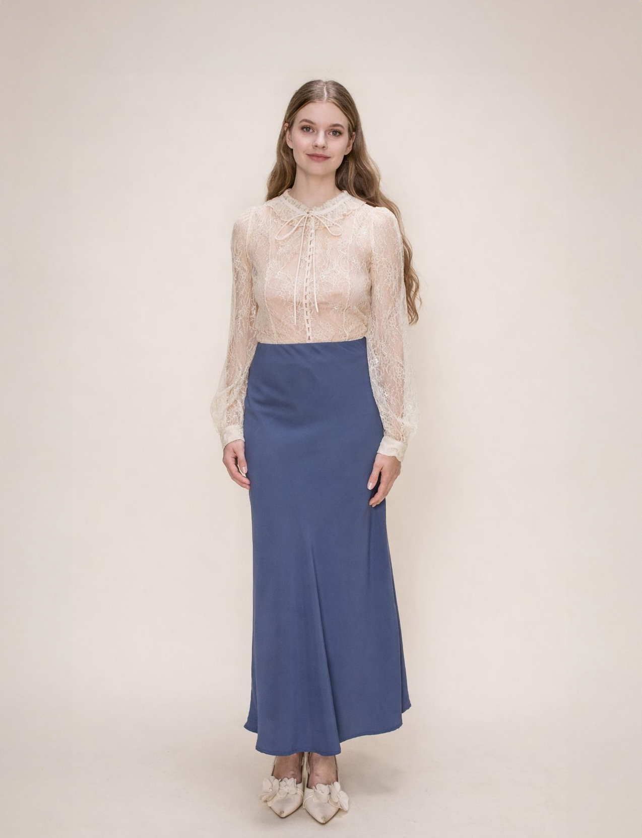 Our bias-cut maxi skirts are designed to move naturally with the body while keeping a clean, smooth silhouette. Cut on the bias, the fabric follows your shape without feeling tight, giving the skirt a soft drape and comfortable movement as you walk.