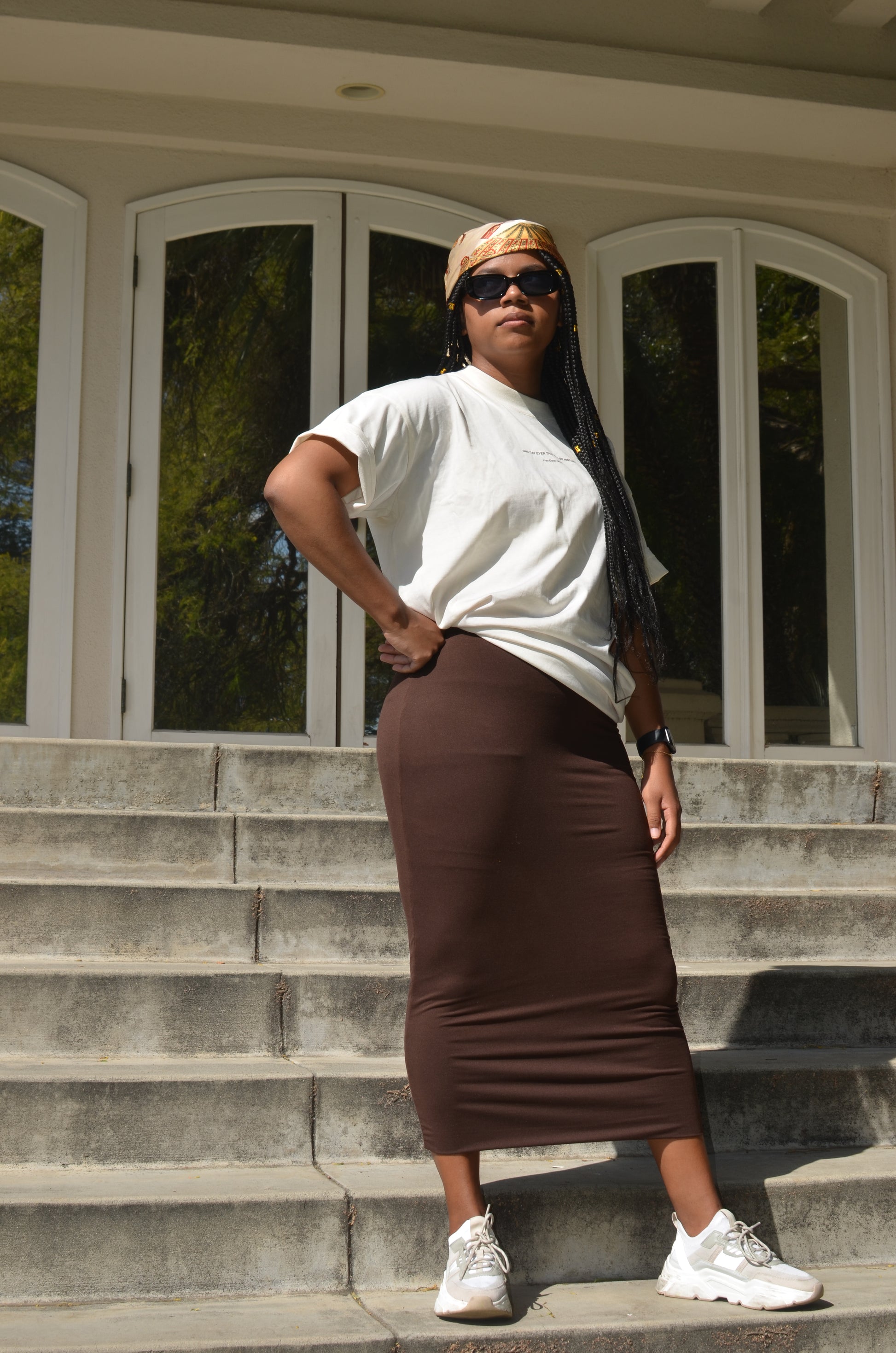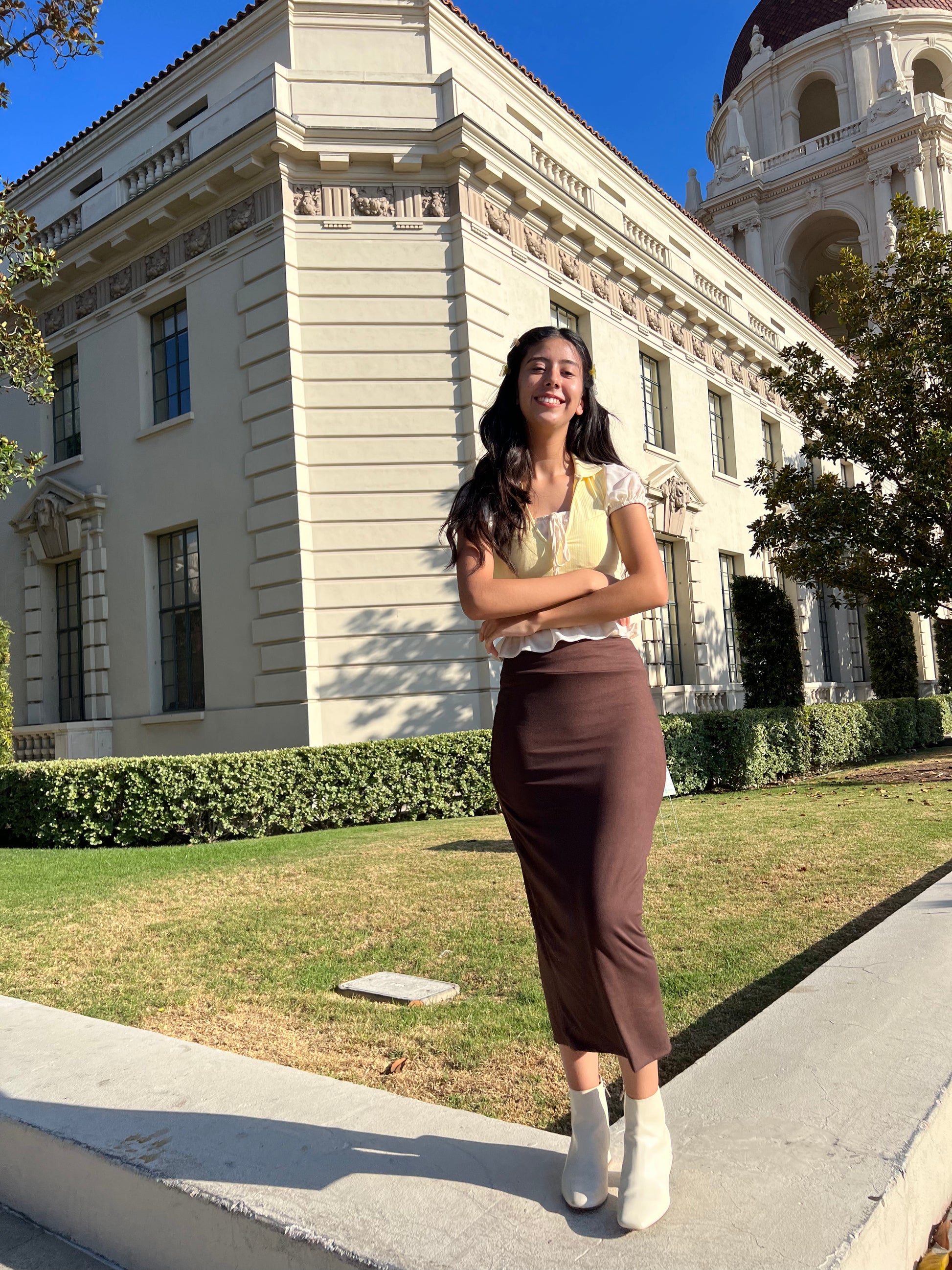 A full-length pencil skirt is perfect for any occasion. Our double-layered skirts are made with DTY Double Brush fabric. a 3-inch elastic waistband that is maternity-friendly. 35-36 inches long