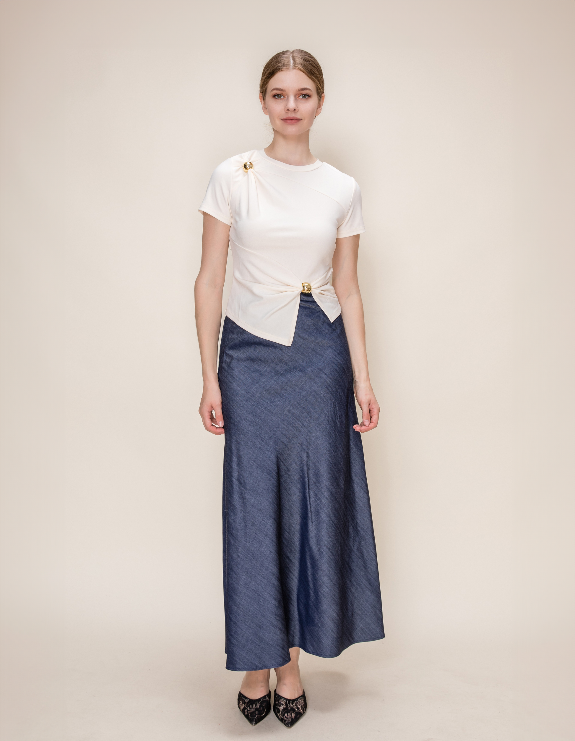 Our bias-cut maxi skirts are designed to move naturally with the body while keeping a clean, smooth silhouette. Cut on the bias, the fabric follows your shape without feeling tight, giving the skirt a soft drape and comfortable movement as you walk.