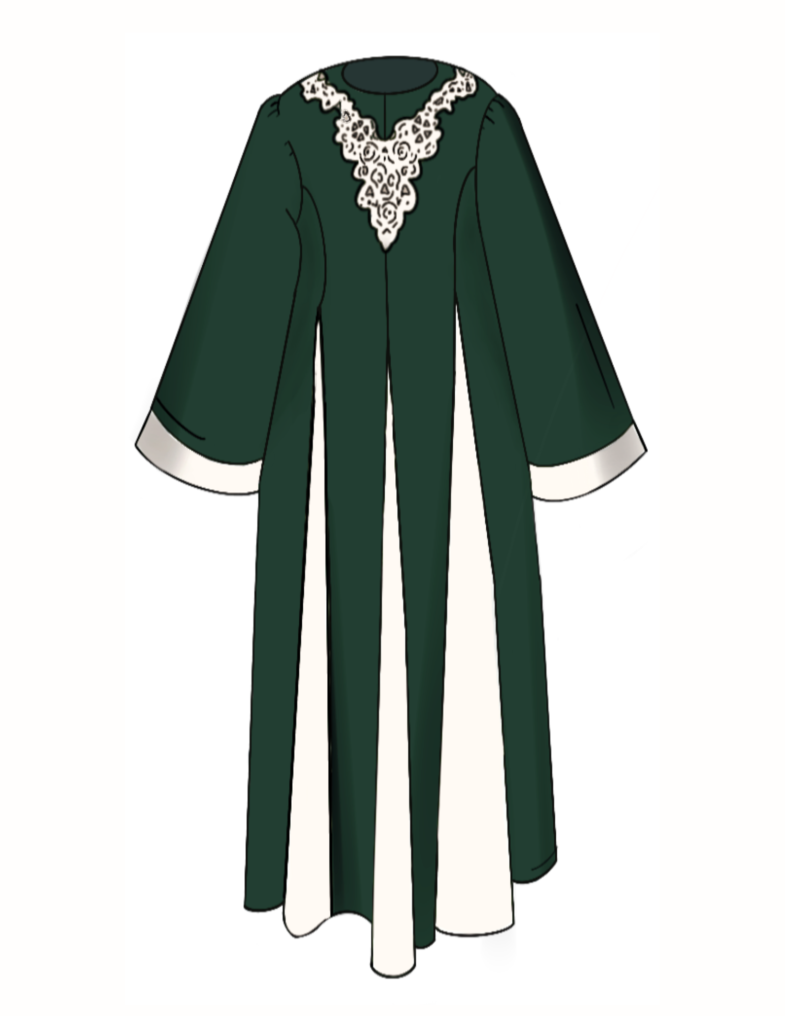 Made from smooth satin stretch fabric, it features a BACK zipper. Decorated with a V-neck application at the top. The sizing is between the Brown toga and the classic togas. Not as tight as brown toga but not as loose-fitting. True to shirt size available in sizes XS to 2XL. The hem is premade to fit women between 5'2" to 5'9". We do not alter any hems