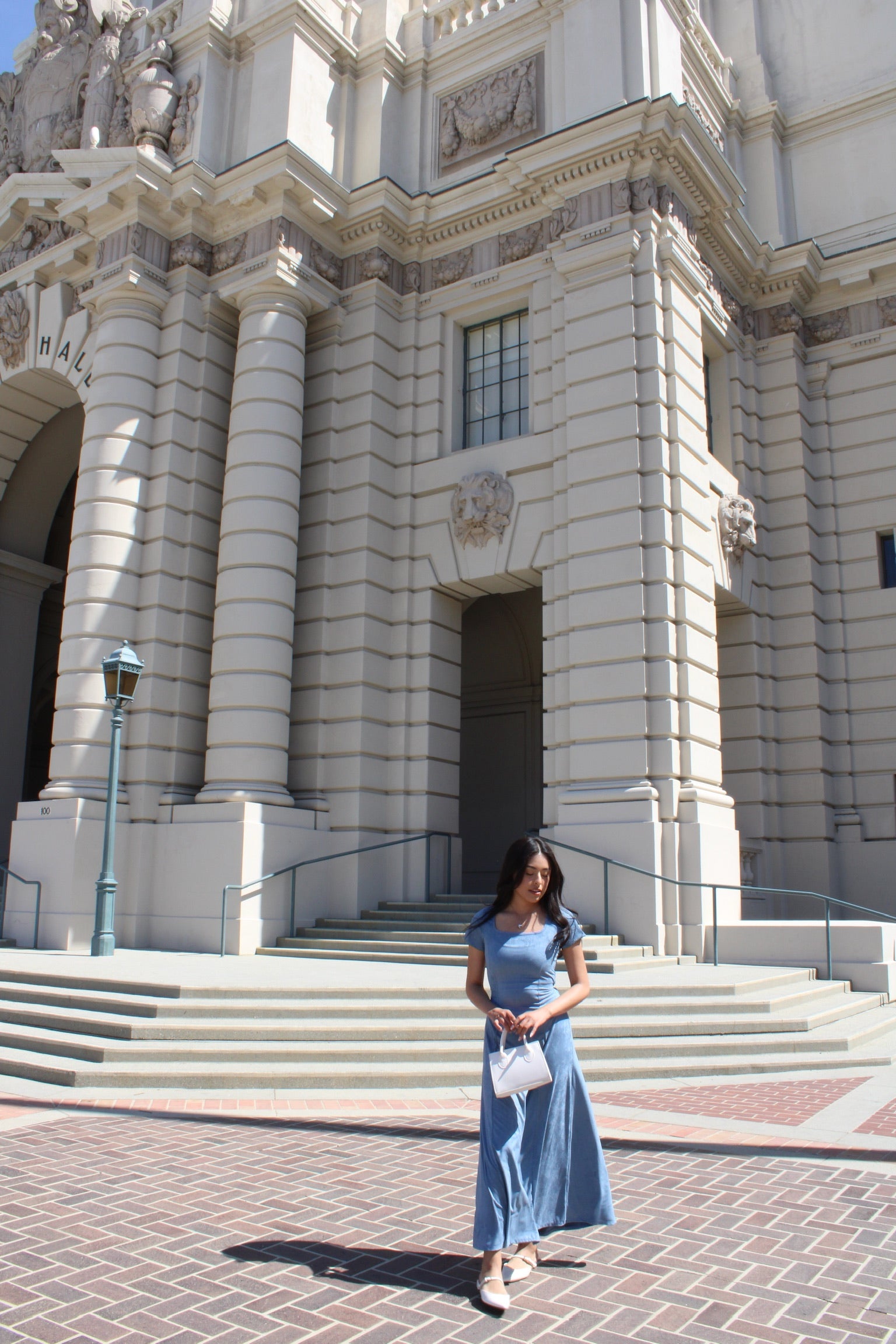 This princess-cut maxi dress is designed with a structured bodice and a flowing skirt. Made from suede material, it provides a combination of texture and comfort. Unlike dresses with a defined waistline, the princess cut provides a continuous, vertical line from the shoulders to the hem. This creates a lengthening effect. Features an adjustable waist tie at the back. This allows for a customized fit at the waist.